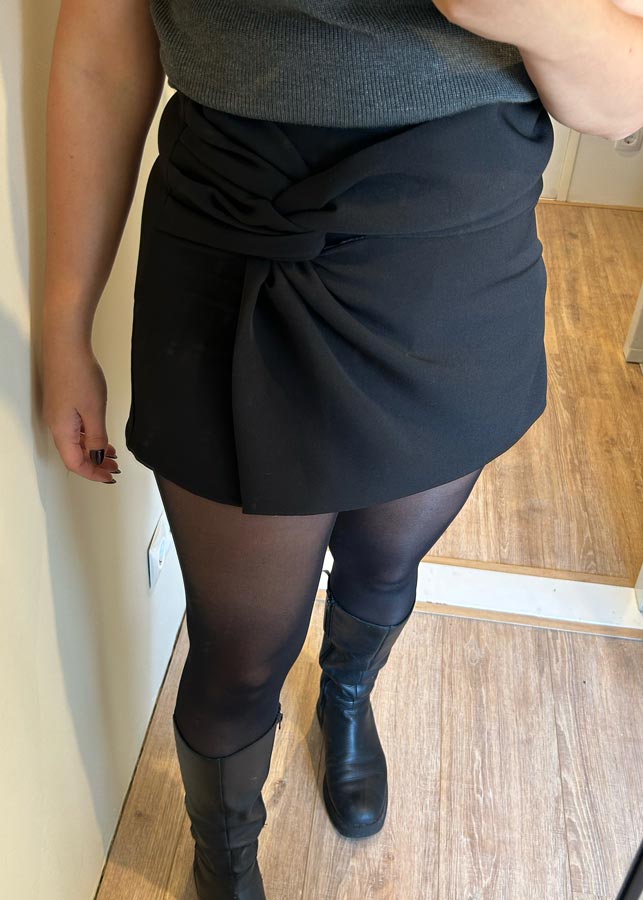 Prachtige zwarte skort combineert de elegantie van een rok met het gemak van een short.