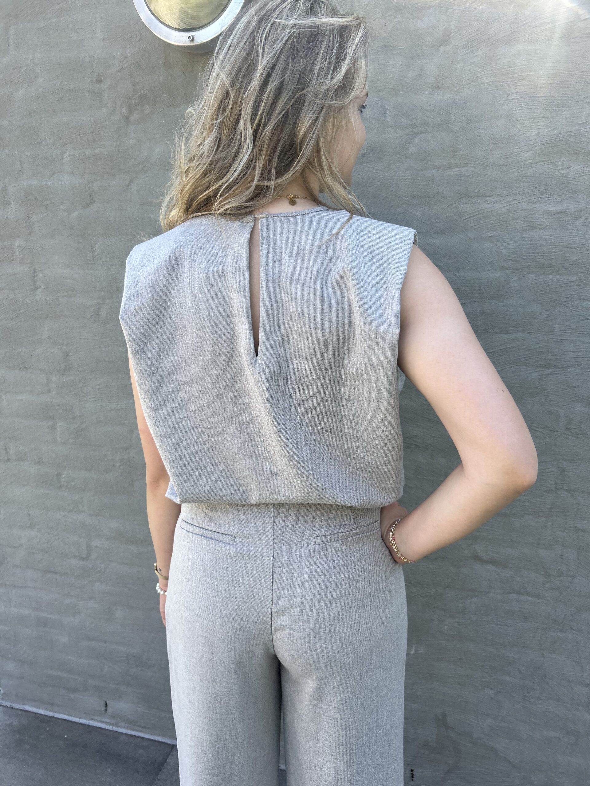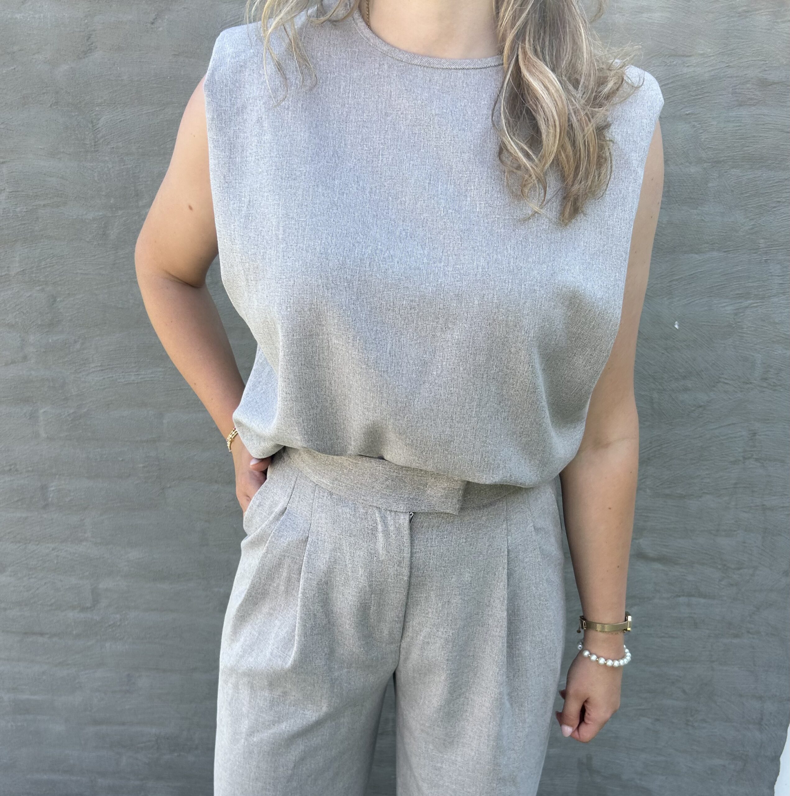 Tamara draagt hier van de pantalon en de top een maat M